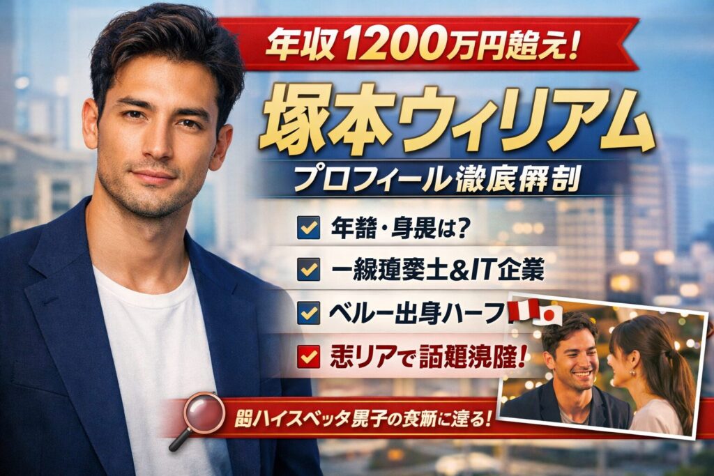 Netflixの人気リアリティ番組「THE BOYFRIEND 2」に登場し、一躍注目を集めた塚本ウィリアムさん。 ペルー生まれ日本育ちという国際的な背景を持ちながらも、IT業界でバリバリ活躍し、年収はなんと1200万円超え! モデル並みのルックスに加え、資格やキャ... -
