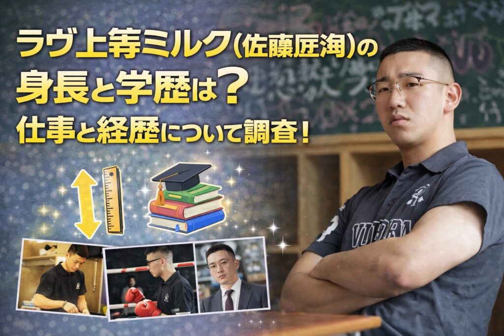 Netflix『ラヴ上等』に出演して話題のラヴ上等ミルク(佐藤匠海)さん。 元暴走族総長から建築業で働く22歳という異色の経歴が注目されていますよね! そんなミルクさんの身長や学歴について、気になっている方も多いのではないでしょうか? この記事では、ラ... -
