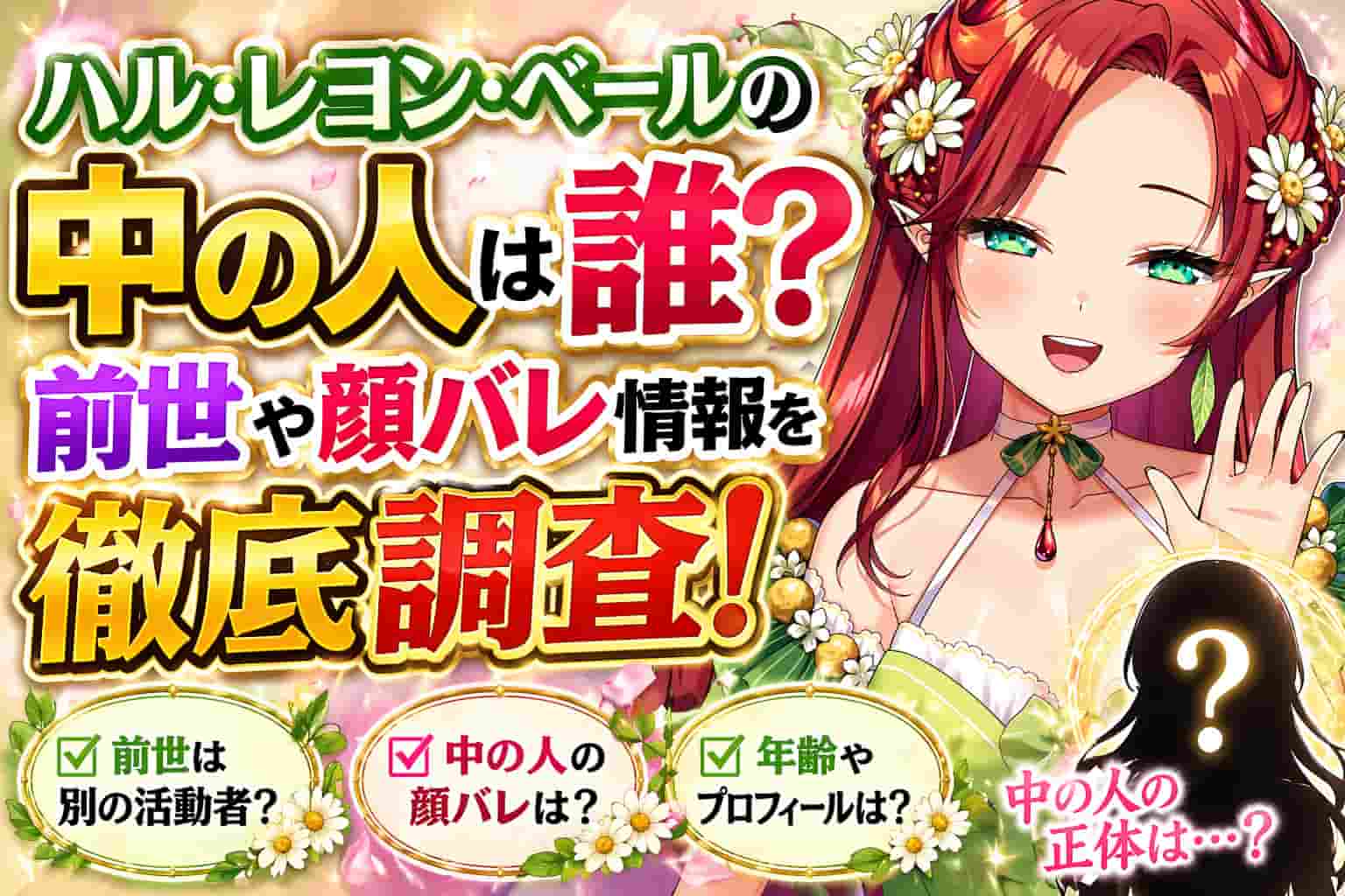 そんなハル・レヨン・ベールさんについて、中の人は誰なのか、前世や顔バレ情報はあるのか気になっている方も多いのではないでしょうか?